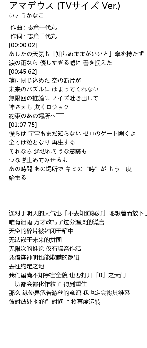 | [00:00.000] | 作曲 : 志倉千代丸 |