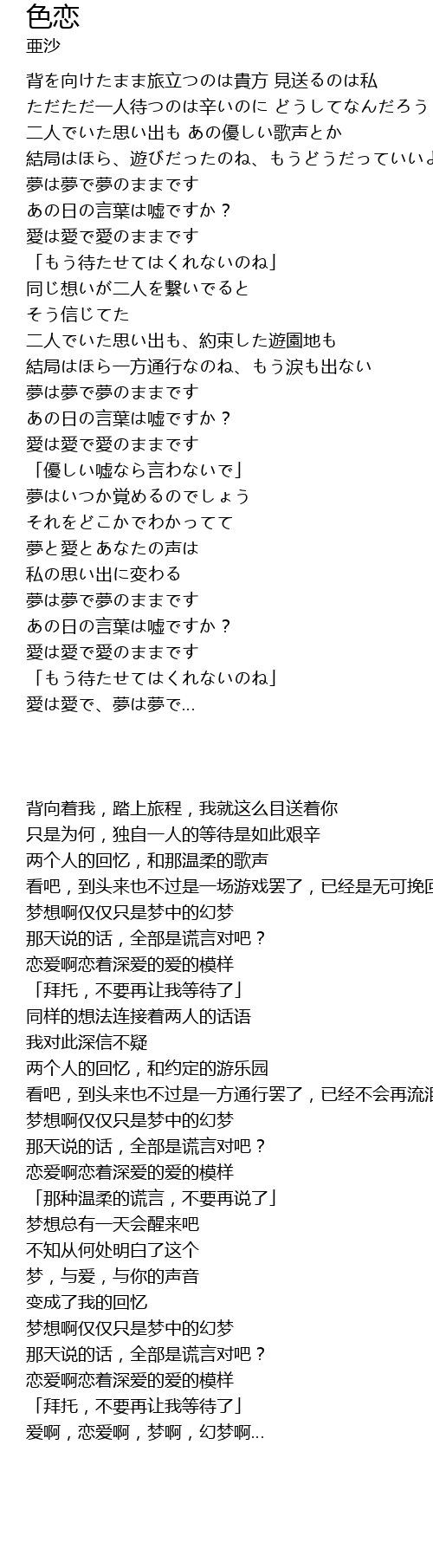 | [01:42.94] | 二人でいた思い出も、約束した遊園地も |