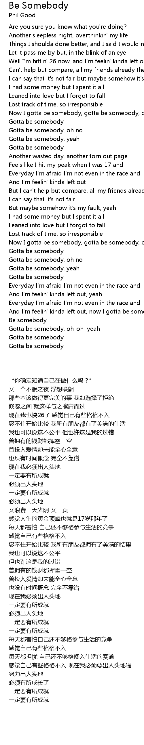 And I'm feelin' kinda left out, now I gotta be somebody |
