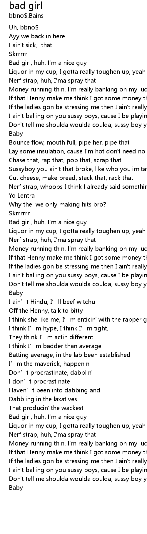 | [01:41.61] | Bad girl, huh, I' m a nice guy |