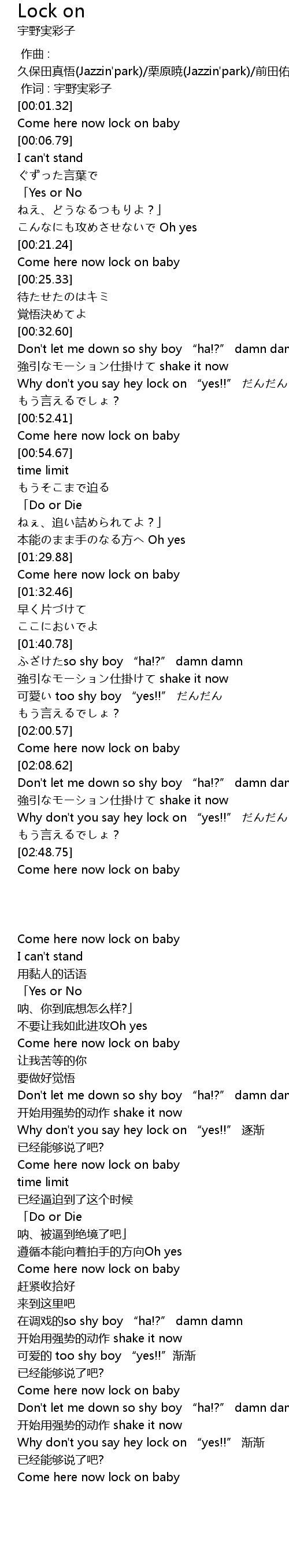 | [00:46.32] | Why don' t you say hey lock on " yes!!" |