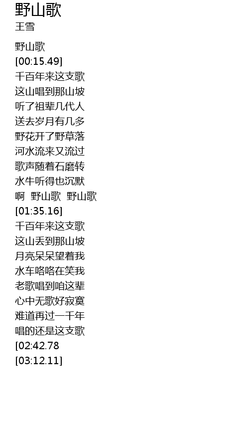 | [02:54.00][02:42.78] | 啊 野山歌 野山歌 |