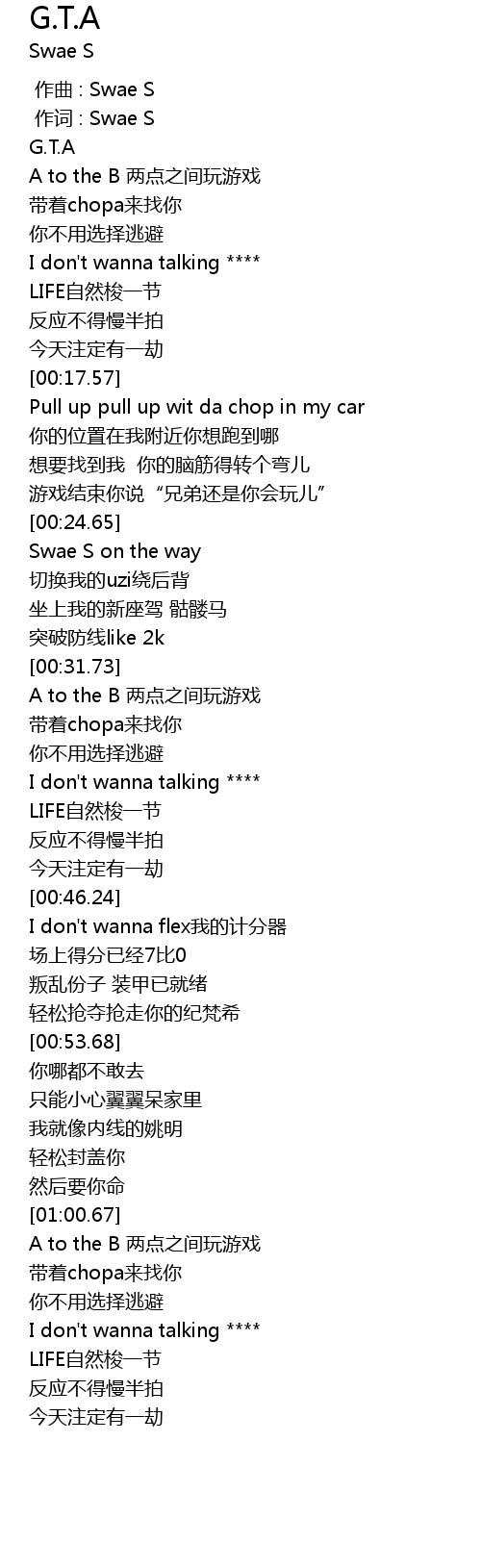 | [00:00.89] | G.T.A |