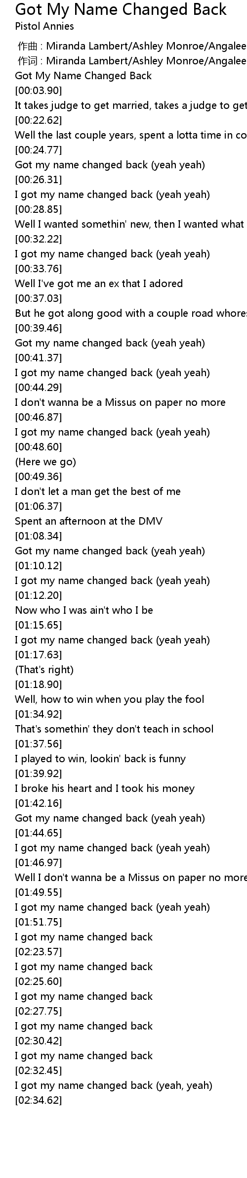 | [00:00.02] | Got My Name Changed Back |