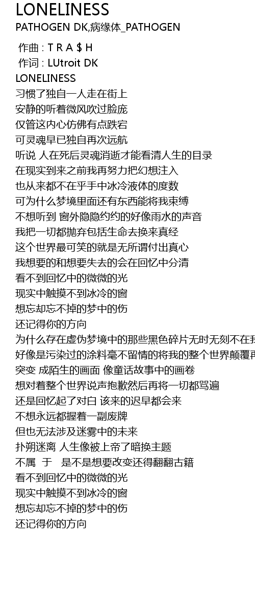 | [00:01.583] | LONELINESS |