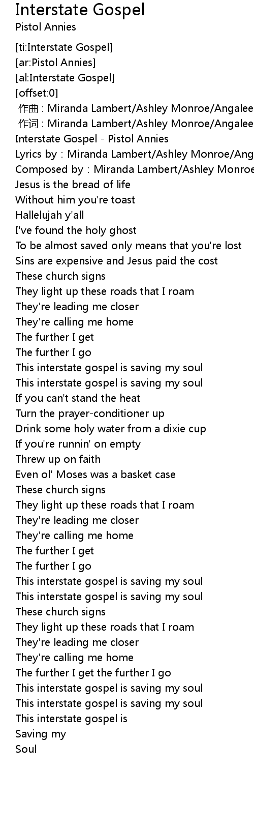 | [01:43.64] | This interstate gospel is saving my soul |