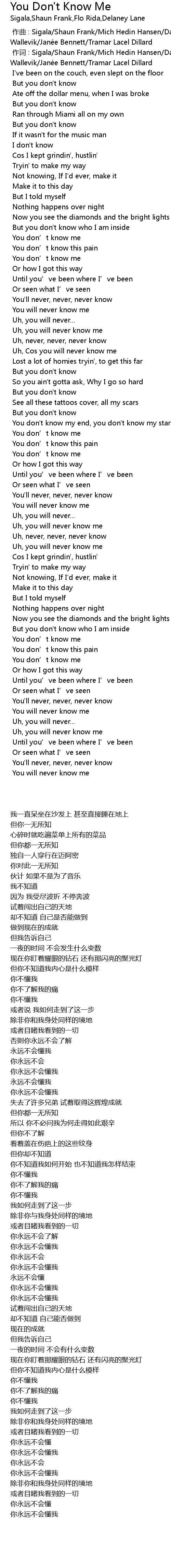 | [00:01.000] | 作词 : Sigala/Shaun Frank/Mich Hedin Hansen/Daniel Davidsen/Peter Wallevik/Janée Bennett/Tramar Lacel Dillard |