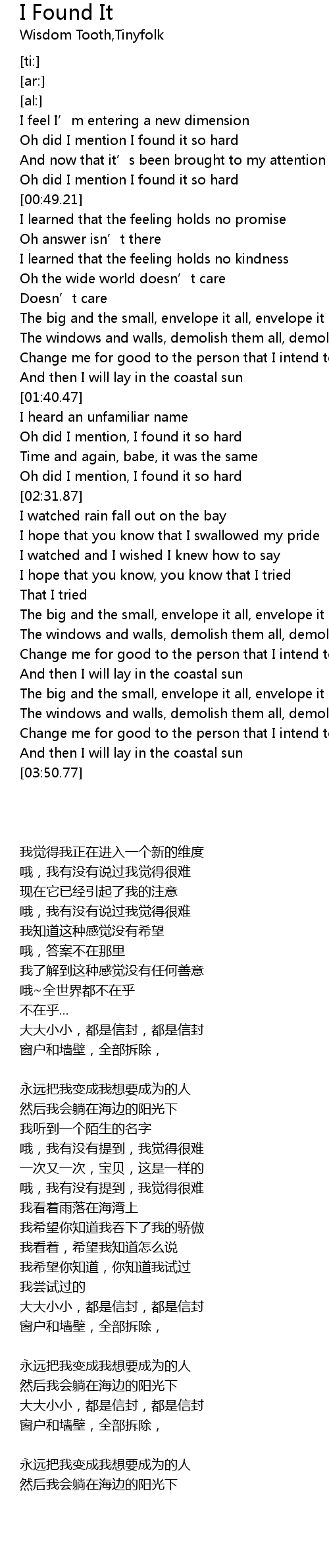 | [00:43.70] | Oh did I mention I found it so hard |