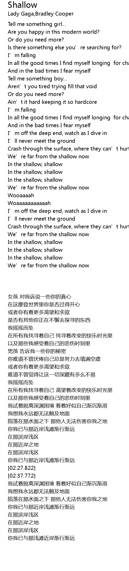 | [02:45.239] | I' m off the deep end, watch as I dive in |