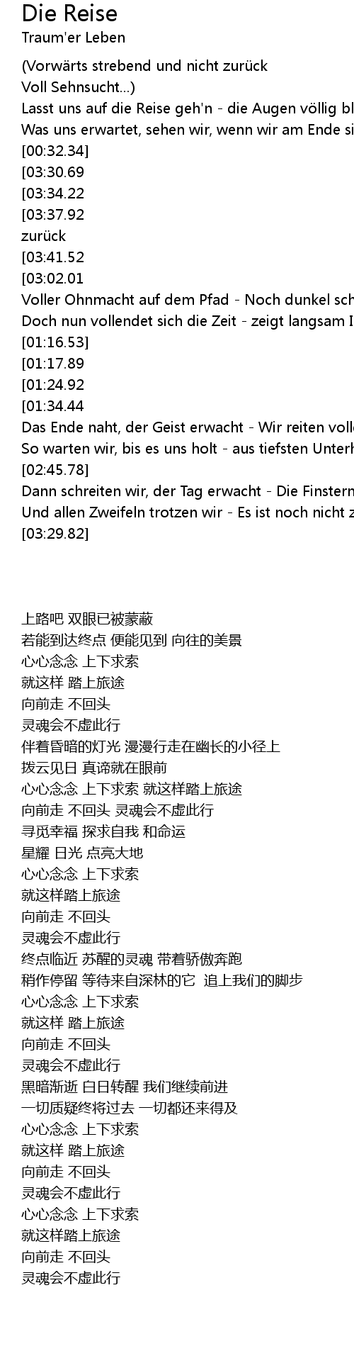 | [03:49.20][03:34.22][02:49.72][02:05.52][00:37.02] | Da geht die Reise hin |