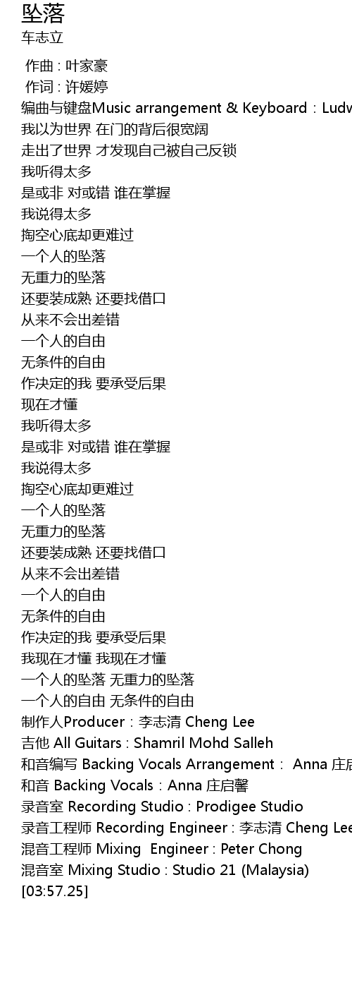 | [03:53.29] | 录音工程师 Recording Engineer : 李志清 Cheng Lee |