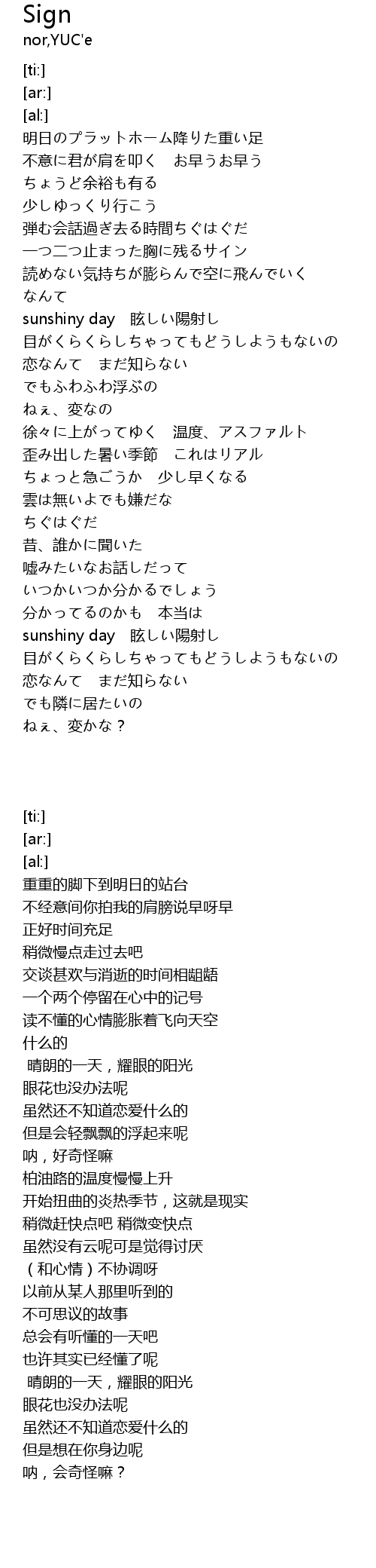 | [01:00.44] | sunshiny day xuàn yáng shè |