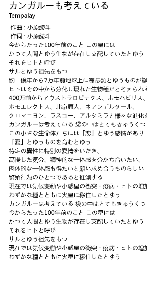 | [02:36.00] | カンガルーは考えている 袋の中はとてもきゅうくつ |