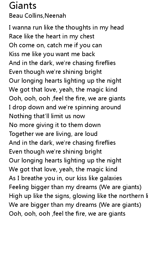| [01:54.25] | Feeling bigger than my dreams (We are giants) |