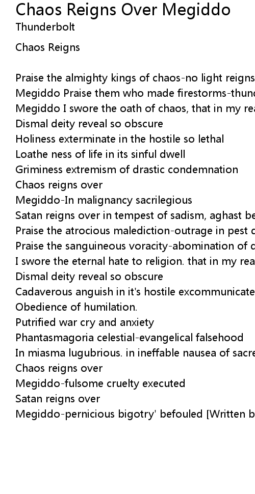 Megiddo I swore the oath of chaos, that in my realm so pure |
