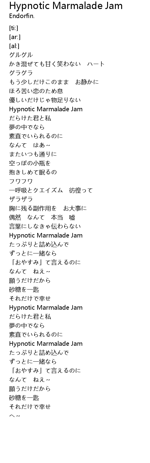 | [00:45.50] | Hypnotic Marmalade Jam |
