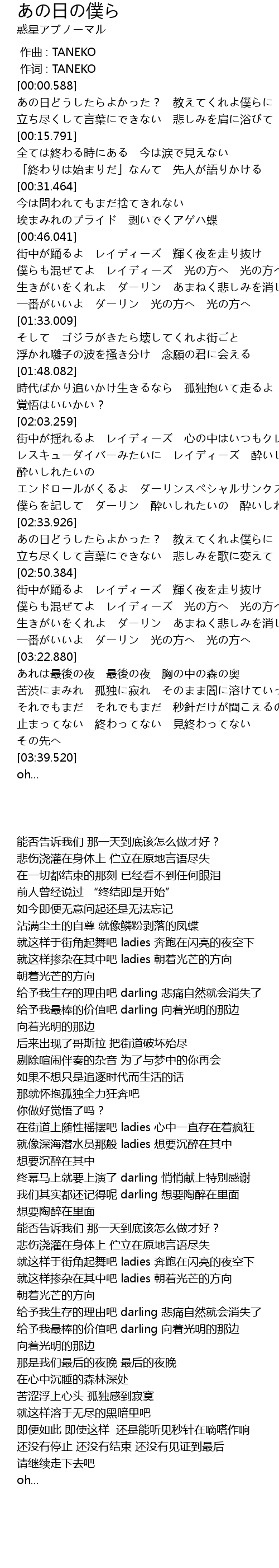 | [00:00.000] | zuò qǔ : TANEKO |