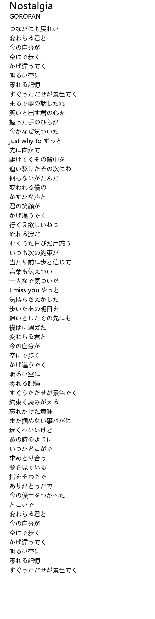 I miss you やっと |