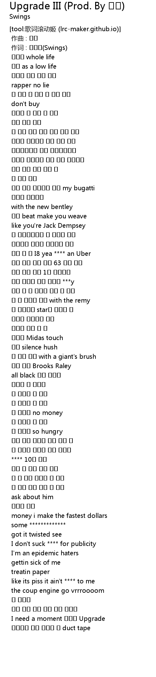 | [00:01.000] | 作词 : 스윙스(Swings) |