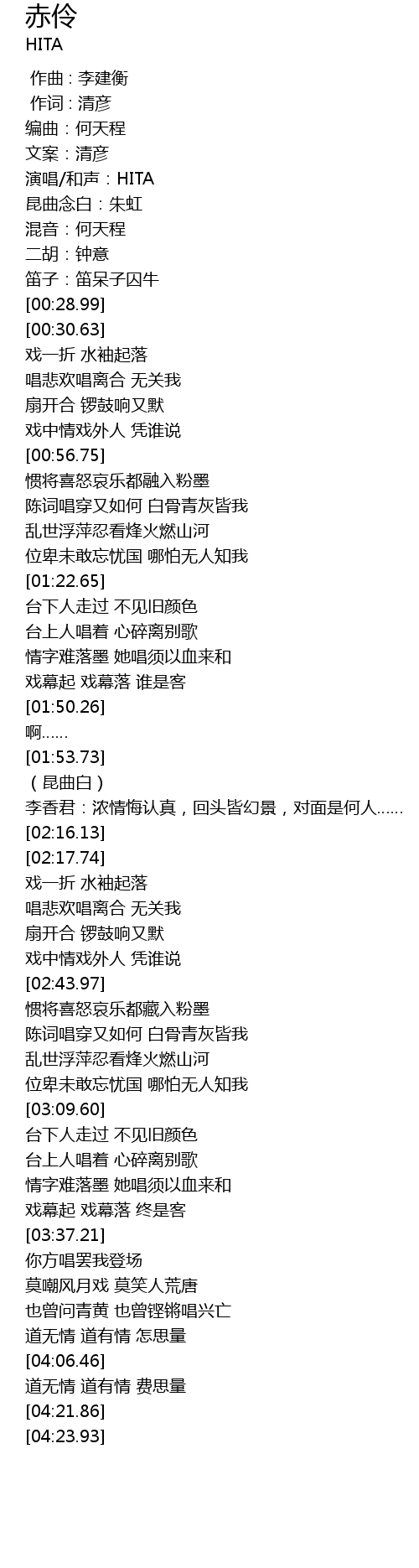 | [00:21.15] | yǎn chàng hé shēng: HITA |