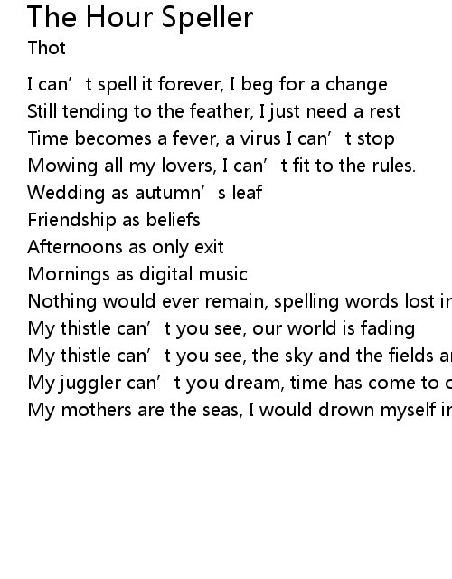 | Song | The Hour Speller |