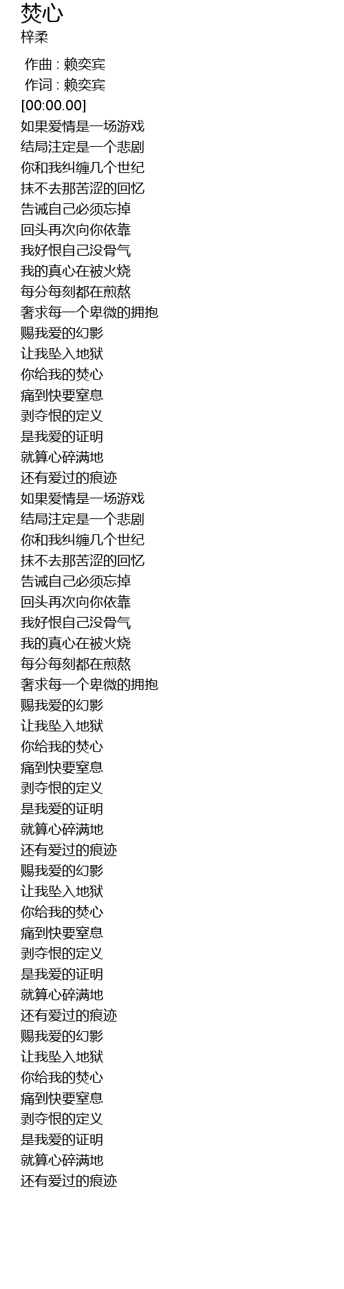 | [00:56.130] | 我的真心在被火烧 |