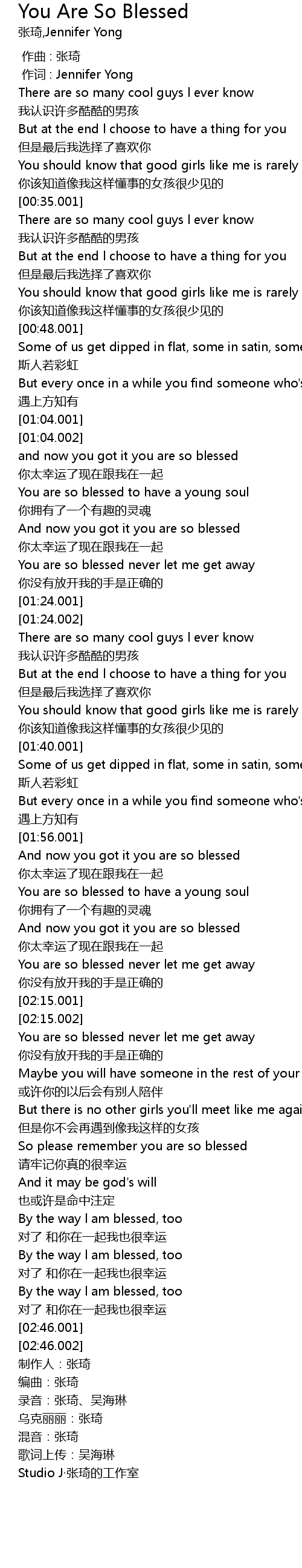 | [02:45.001] | By the way l am blessed, too |