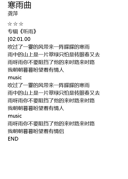 | [00:30.00] | 专辑《听雨》 |