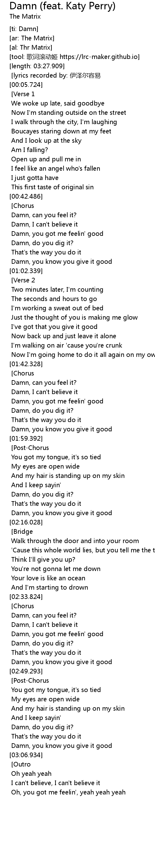 | [03:21.984] | Oh, you got me feelin', yeah yeah yeah |