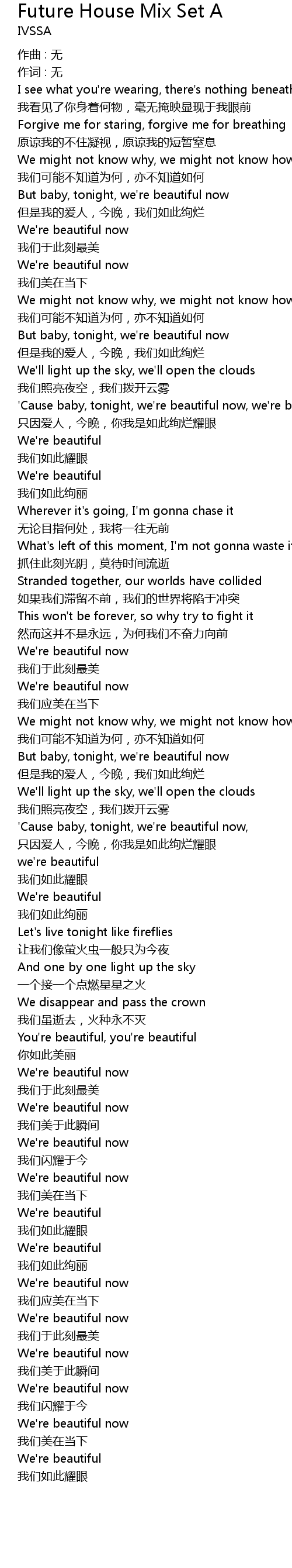 | ' Cause baby, tonight, we' re beautiful now, we' re beautiful | |