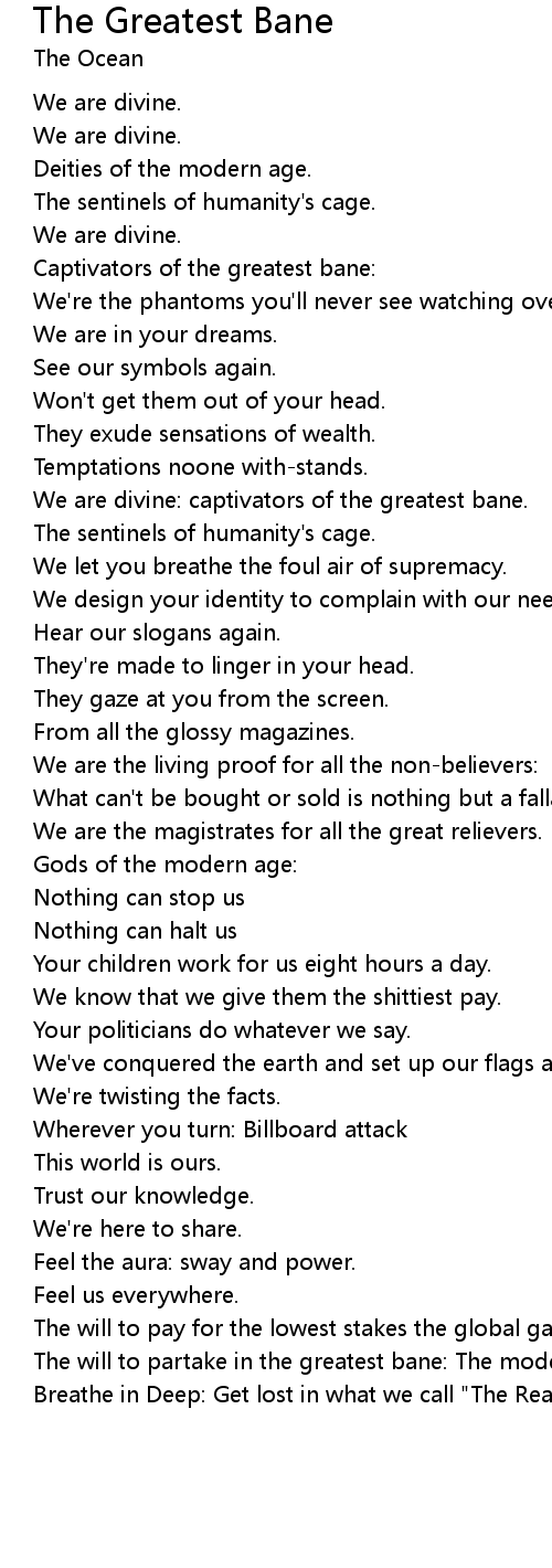 | We are divine: captivators of the greatest bane. | |