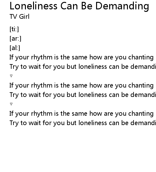 | [01:21.95] | Try to wait for you but loneliness can be demanding |