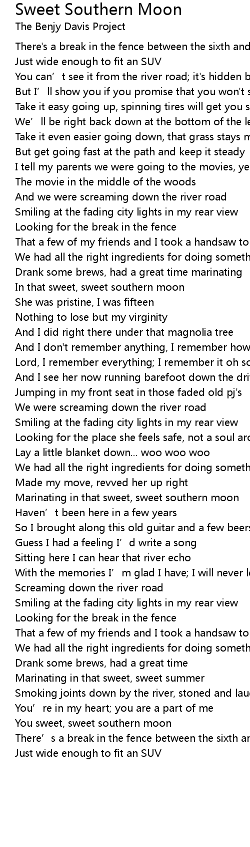 | Song | Sweet Southern Moon |