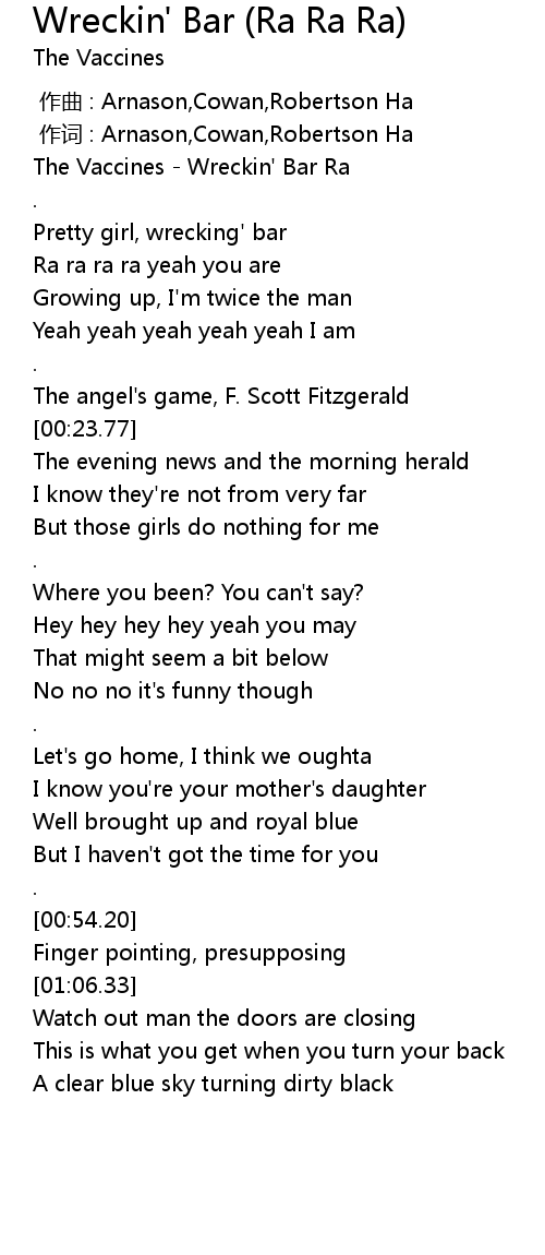 | [00:00.32] | The Vaccines Wreckin' Bar Ra |
