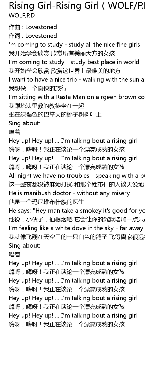 | Hey up! Hey up! ... I' m talking bout a rising girl | |