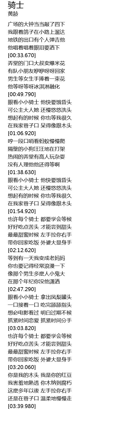 | [03:04.260] | 也许每个骑士 都要学会等候 |