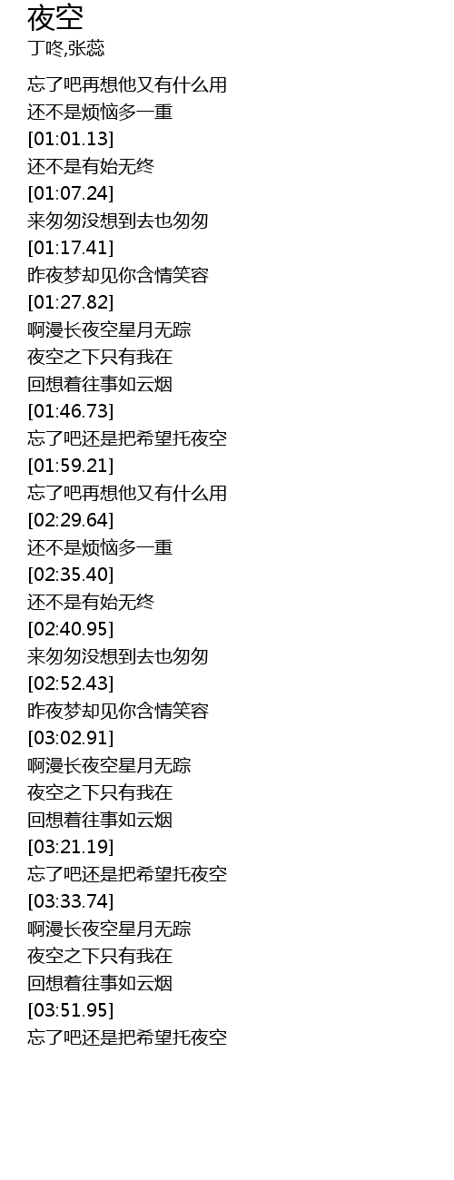 | [01:48.16] | wàng le ba hái shì bǎ xī wàng tuō yè kōng |