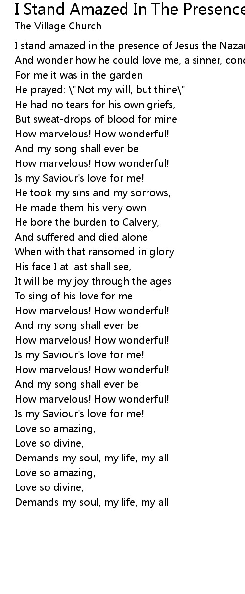 I stand amazed in the presence of Jesus the Nazarene |