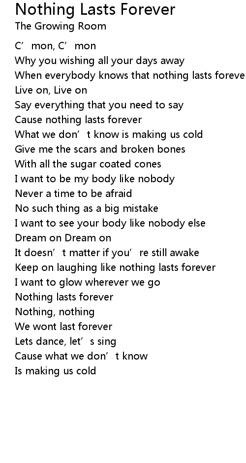 | Cause nothing lasts forever | |
