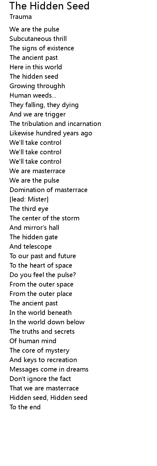 | Song | The Hidden Seed |