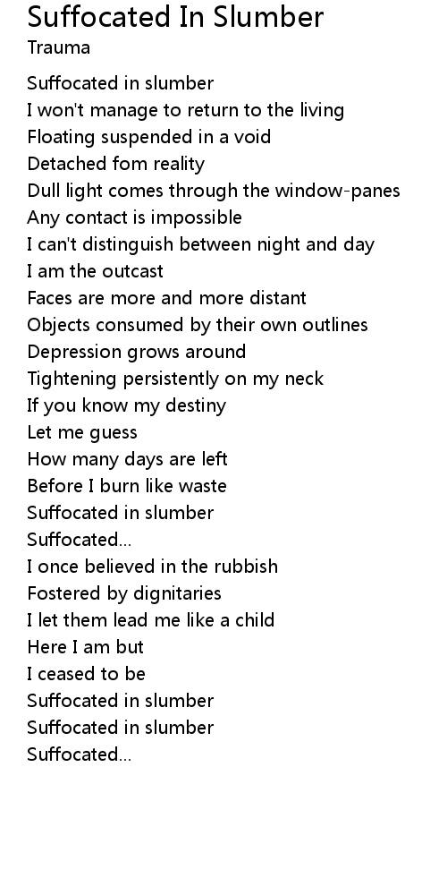 Suffocated in slumber |