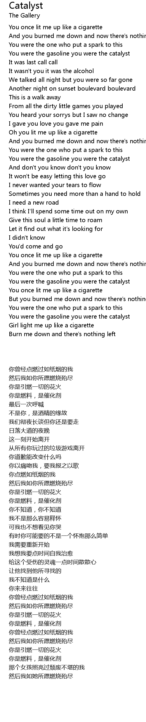 You were the gasoline you were the catalyst |