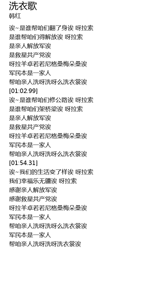 | [01:48.75] | 帮咱亲人洗呀洗呀么洗衣裳诶 |