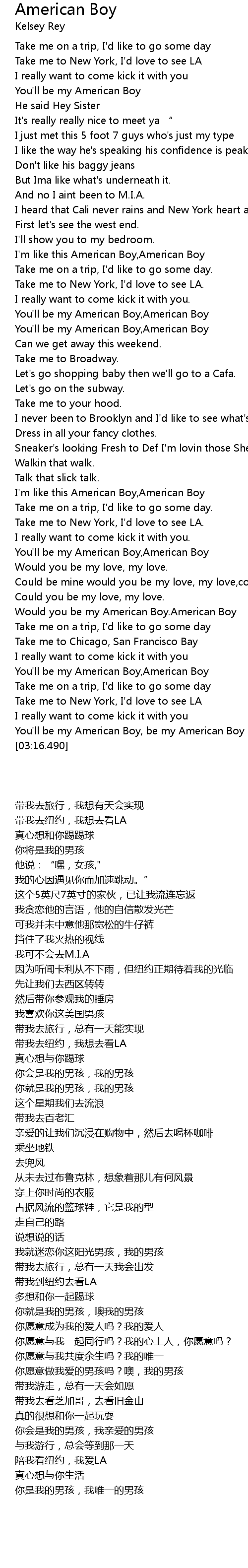 | [02:19.040] | You' ll be my American Boy, American Boy |