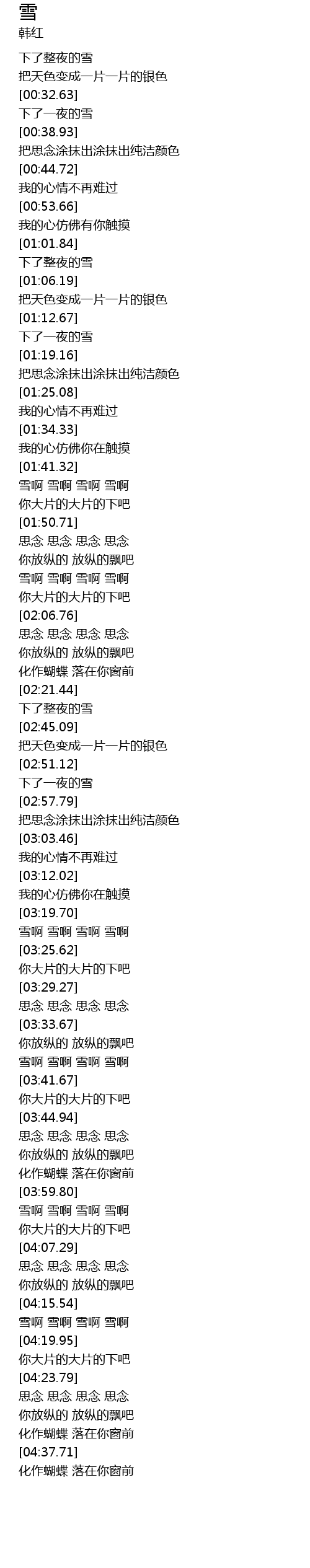 | [01:43.59] | 雪啊 雪啊 雪啊 雪啊 |
