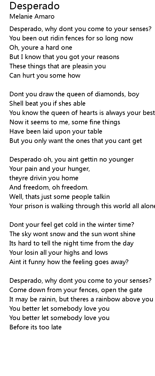 Desperado, why dont you come to your senses? |