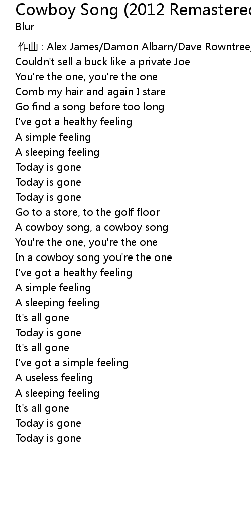 | [00:00.000] | zuò qǔ : Alex James Damon Albarn Dave Rowntree Graham Coxon |