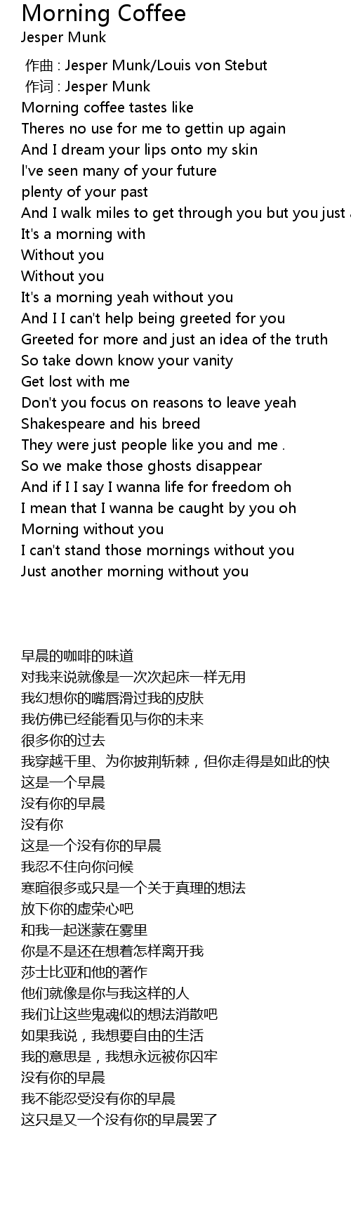 | [01:01.490] | It's a morning yeah without you |