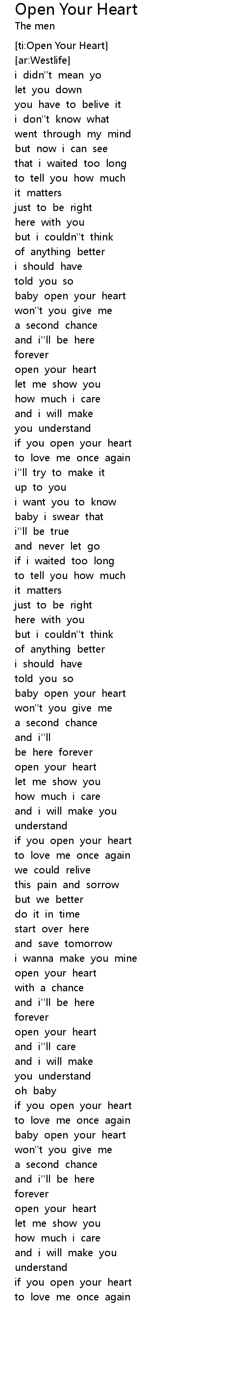 [ti:Open Your Heart] |