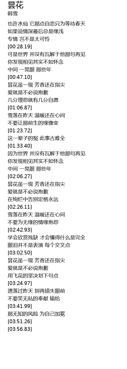 | [03:07.42] | 昙花虽一现 芳香还在指尖 |